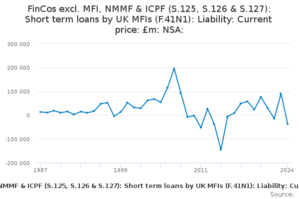 Download this time seriesFinCos excl. MFI, NMMF & ICPF (S.125, S.126 & S.127): Short term loans by UK MFIs (F.41N1): Liability: Current price: £m: NSA: