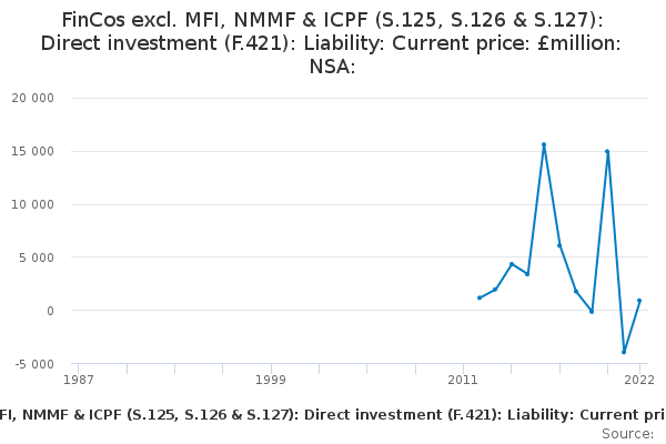 Download this time seriesFinCos excl. MFI, NMMF & ICPF (S.125, S.126 & S.127): Direct investment (F.421): Liability: Current price: £million: NSA: