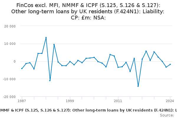 Download this time seriesFinCos excl. MFI, NMMF & ICPF (S.125, S.126 & S.127): Other long-term loans by UK residents (F.424N1): Liability: CP: £m: NSA: