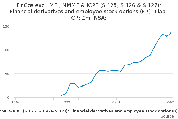 Download this time seriesFinCos excl. MFI, NMMF & ICPF (S.125, S.126 & S.127): Financial derivatives and employee stock options (F.7): Liab: CP: £m: NSA: