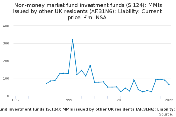 Download this time seriesNon-money market fund investment funds (S.124): MMIs issued by other UK residents (AF.31N6): Liability: Current price: £m: NSA: