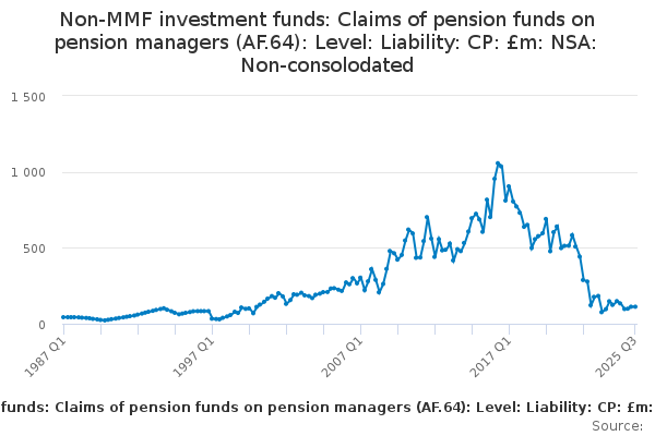 Download this time seriesNon-MMF investment funds: Claims of pension funds on pension managers (AF.64): Level: Liability: CP: £m: NSA: Non-consolodated