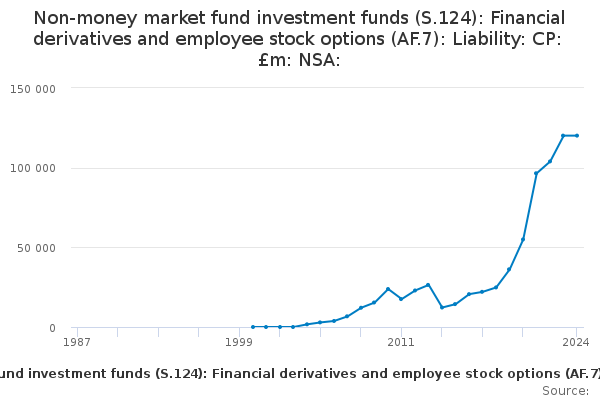 Download this time seriesNon-money market fund investment funds (S.124): Financial derivatives and employee stock options (AF.7): Liability: CP: £m: NSA: