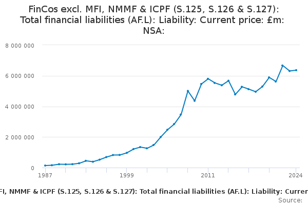 Download this time seriesFinCos excl. MFI, NMMF & ICPF (S.125, S.126 & S.127): Total financial liabilities (AF.L): Liability: Current price: £m: NSA: