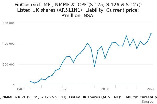 Download this time seriesFinCos excl. MFI, NMMF & ICPF (S.125, S.126 & S.127): Listed UK shares (AF.511N1): Liability: Current price: £million: NSA: