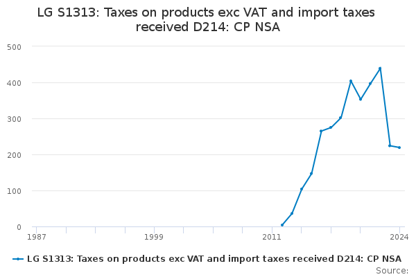 Download this time seriesLG S1313: Taxes on products exc VAT and import taxes received D214: CP NSA