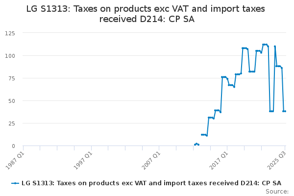 Download this time seriesLG S1313: Taxes on products exc VAT and import taxes received D214: CP SA