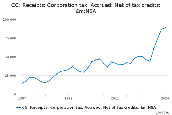 Download this time seriesCG: Receipts: Corporation tax: Accrued: Net of tax credits: £m:NSA