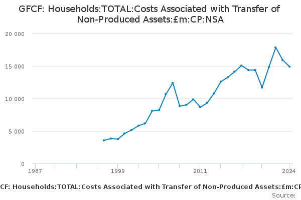 Download this time seriesGFCF: Households:TOTAL:Costs Associated with Transfer of Non-Produced Assets:£m:CP:NSA