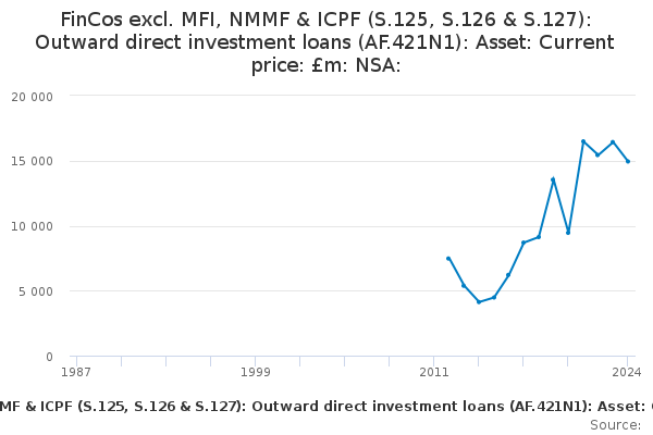 Download this time seriesFinCos excl. MFI, NMMF & ICPF (S.125, S.126 & S.127): Outward direct investment loans (AF.421N1): Asset: Current price: £m: NSA: