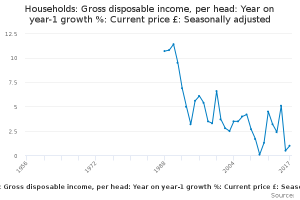 Download this time seriesHouseholds: Gross disposable income, per head: Year on year-1 growth %: Current price £: Seasonally adjusted