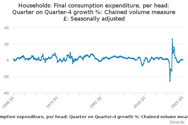 Download this time seriesHouseholds: Final consumption expenditure, per head: Quarter on Quarter-4 growth %: Chained volume measure £: Seasonally adjusted