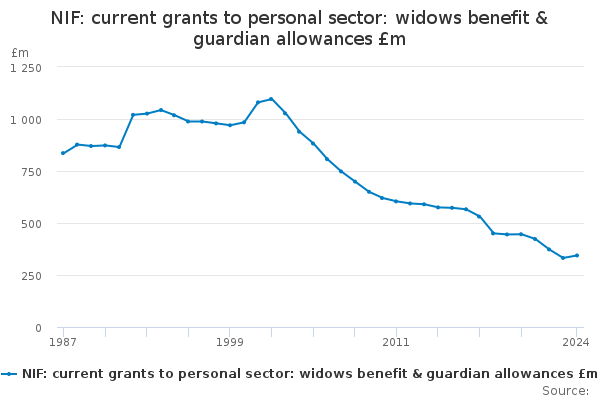 Download this time seriesNIF: current grants to personal sector: widows benefit & guardian allowances £m