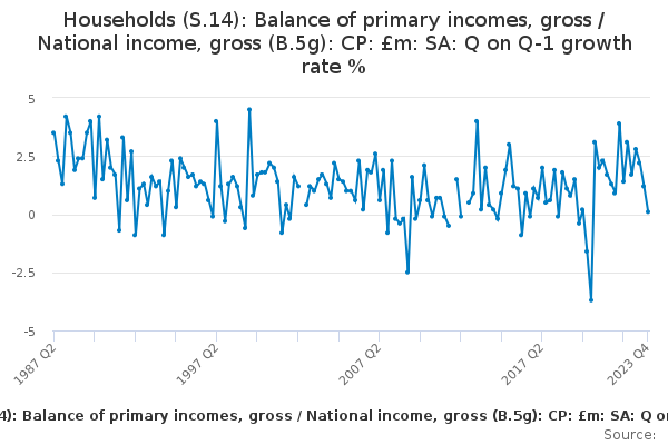 CRXB – Real households and non-profit institutions serving households (S.14 + S.15) expenditure implied deflator: Index (Reference year 2016): Not seasonally adjusted YBFS – Real households and non-profit institutions serving households (S.14 + S.15) expenditure implied deflator: Index (Reference year 2016): Seasonally adjusted CRXA – Real households (S.14) expenditure implied deflator: Index (Reference year 2016): Not seasonally adjusted DG2Q – Real households (S.14) expenditure implied deflator: Index (Reference year 2016): Seasonally adjusted CSC8 - Real households (S.14) expenditure implied deflator: Y/Y-1 growth percent: Seasonally adjusted CSEZ - Real households (S.14) expenditure implied deflator: Q/Q-1 growth percent: Seasonally adjusted CSGE - Real households (S.14) expenditure implied deflator: Q/Q-4 percent: Seasonally adjusted CSK9 – Cash Basis Real Households (S.14) Expenditure implied deflator: Index (ref year = 2016): Seasonally adjusted CSJ6 - CASH BASIS Real Households (S.14) disposable income: £Million: Seasonally adjusted CSJ7 – CASH BASIS Real Households (S.14) disposable income: growth t/t-1 percent: Seasonally adjusted CSK4 – CASH BASIS Real Households (S.14) disposable income: growth t/t-4 percent: Seasonally adjusted CSK2 – CASH BASIS Real households (S.14) disposable income: Per head £: SA Seasonally adjusted CSK3 – CASH BASIS Real households (S.14) disposable income: Per head growth t/t-1 percent: Seasonally adjusted CT3K – CASH BASIS Real households (S.14) disposable income: Per head growth t/t-1 percent: Seasonally adjusted
