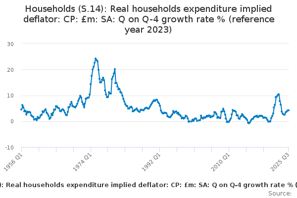 CRXB – Real households and non-profit institutions serving households (S.14 + S.15) expenditure implied deflator: Index (Reference year 2016): Not seasonally adjusted YBFS – Real households and non-profit institutions serving households (S.14 + S.15) expenditure implied deflator: Index (Reference year 2016): Seasonally adjusted CRXA – Real households (S.14) expenditure implied deflator: Index (Reference year 2016): Not seasonally adjusted DG2Q – Real households (S.14) expenditure implied deflator: Index (Reference year 2016): Seasonally adjusted CSC8 - Real households (S.14) expenditure implied deflator: Y/Y-1 growth percent: Seasonally adjusted CSEZ - Real households (S.14) expenditure implied deflator: Q/Q-1 growth percent: Seasonally adjusted CSGE - Real households (S.14) expenditure implied deflator: Q/Q-4 percent: Seasonally adjusted CSK9 – Cash Basis Real Households (S.14) Expenditure implied deflator: Index (ref year = 2016): Seasonally adjusted CSJ6 - CASH BASIS Real Households (S.14) disposable income: £Million: Seasonally adjusted CSJ7 – CASH BASIS Real Households (S.14) disposable income: growth t/t-1 percent: Seasonally adjusted CSK4 – CASH BASIS Real Households (S.14) disposable income: growth t/t-4 percent: Seasonally adjusted CSK2 – CASH BASIS Real households (S.14) disposable income: Per head £: SA Seasonally adjusted CSK3 – CASH BASIS Real households (S.14) disposable income: Per head growth t/t-1 percent: Seasonally adjusted CT3K – CASH BASIS Real households (S.14) disposable income: Per head growth t/t-1 percent: Seasonally adjusted