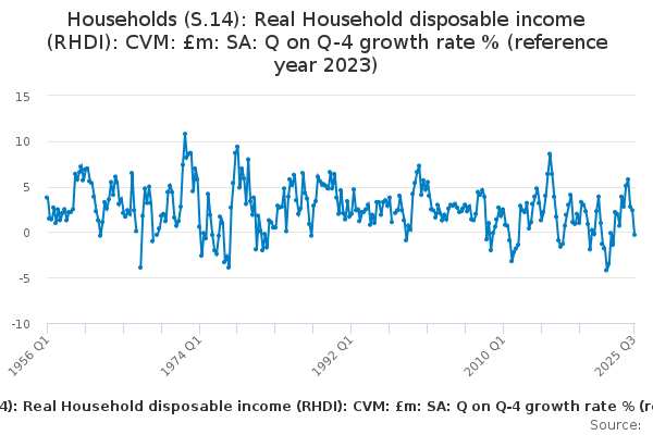 Download this time seriesHouseholds (S.14): Real Household disposable income (RHDI): CVM: £m: SA: Q on Q-4 growth rate % (reference year 2023)