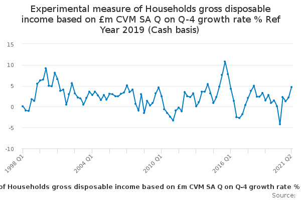 CRXB – Real households and non-profit institutions serving households (S.14 + S.15) expenditure implied deflator: Index (Reference year 2016): Not seasonally adjusted YBFS – Real households and non-profit institutions serving households (S.14 + S.15) expenditure implied deflator: Index (Reference year 2016): Seasonally adjusted CRXA – Real households (S.14) expenditure implied deflator: Index (Reference year 2016): Not seasonally adjusted DG2Q – Real households (S.14) expenditure implied deflator: Index (Reference year 2016): Seasonally adjusted CSC8 - Real households (S.14) expenditure implied deflator: Y/Y-1 growth percent: Seasonally adjusted CSEZ - Real households (S.14) expenditure implied deflator: Q/Q-1 growth percent: Seasonally adjusted CSGE - Real households (S.14) expenditure implied deflator: Q/Q-4 percent: Seasonally adjusted CSK9 – Cash Basis Real Households (S.14) Expenditure implied deflator: Index (ref year = 2016): Seasonally adjusted CSJ6 - CASH BASIS Real Households (S.14) disposable income: £Million: Seasonally adjusted CSJ7 – CASH BASIS Real Households (S.14) disposable income: growth t/t-1 percent: Seasonally adjusted CSK4 – CASH BASIS Real Households (S.14) disposable income: growth t/t-4 percent: Seasonally adjusted CSK2 – CASH BASIS Real households (S.14) disposable income: Per head £: SA Seasonally adjusted CSK3 – CASH BASIS Real households (S.14) disposable income: Per head growth t/t-1 percent: Seasonally adjusted CT3K – CASH BASIS Real households (S.14) disposable income: Per head growth t/t-1 percent: Seasonally adjusted