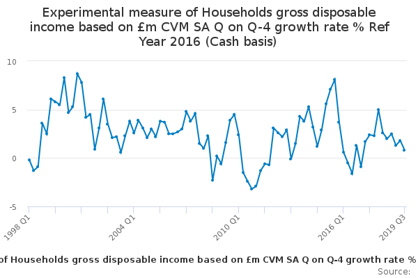 Download this time seriesExperimental measure of Households gross disposable income based on £m CVM SA Q on Q-4 growth rate % Ref Year 2016 (Cash basis)