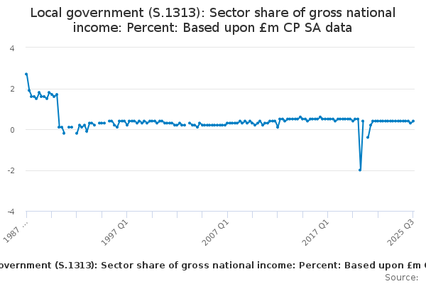 Download this time seriesLocal government (S.1313): Sector share of gross national income: Percent: Based upon £m CP SA data