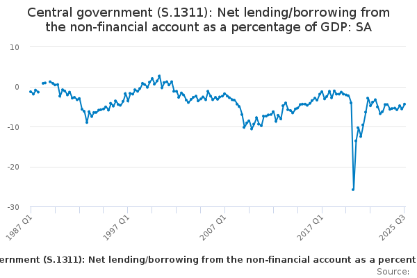 Download this time seriesCentral government (S.1311): Net lending/borrowing from the non-financial account as a percentage of GDP: SA