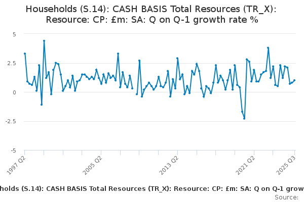 Download this time seriesHouseholds (S.14): CASH BASIS Total Resources (TR_X): Resource: CP: £m: SA: Q on Q-1 growth rate %