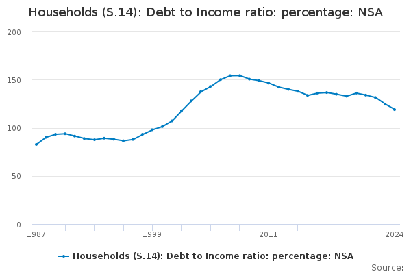 Download this time seriesHouseholds (S.14): Debt to Income ratio: percentage: NSA