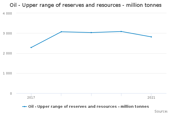 Download this time seriesOil - Upper range of reserves and resources - million tonnes
