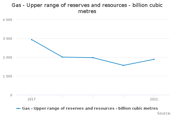 Download this time seriesGas - Upper range of reserves and resources - billion cubic metres