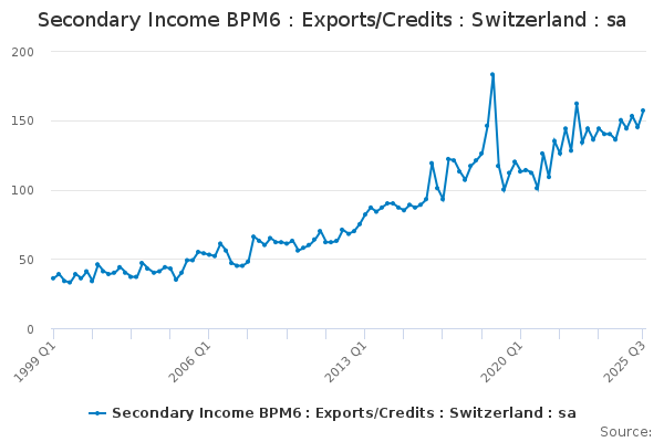 Download this time seriesSecondary Income BPM6 : Exports/Credits : Switzerland : sa