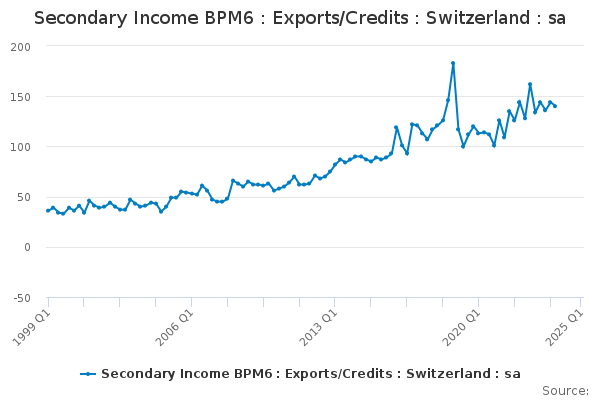 Download this time seriesSecondary Income BPM6 : Exports/Credits : Switzerland : sa
