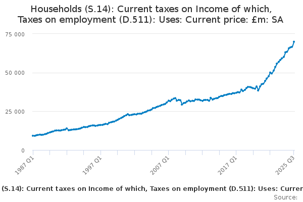 Download this time seriesHouseholds (S.14): Current taxes on Income of which, Taxes on employment (D.511): Uses: Current price: £m: SA