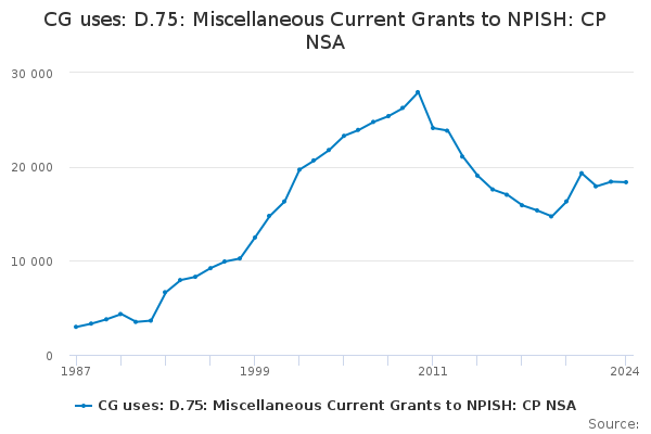 Download this time seriesCG uses: D.75: Miscellaneous Current Grants to NPISH: CP NSA