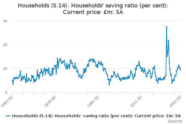 Download this time seriesHouseholds (S.14): Households' saving ratio (per cent): Current price: £m: SA