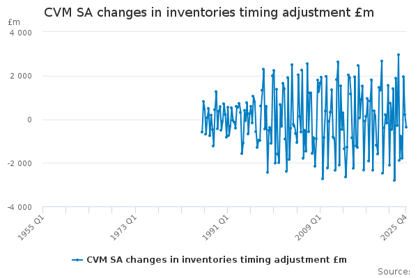 Download this time seriesCVM SA changes in inventories timing adjustment £m