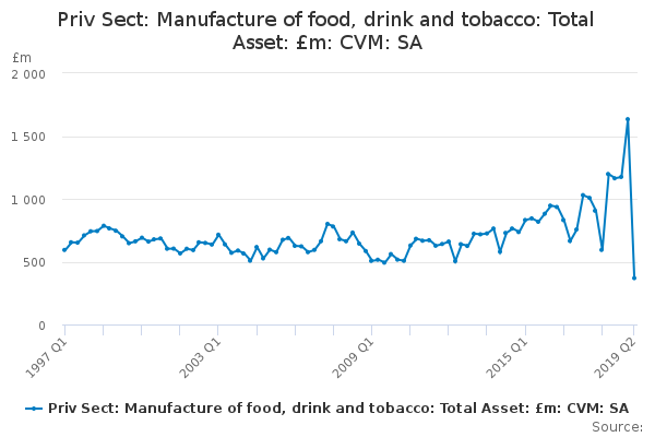 Download this time seriesPriv Sect: Manufacture of food, drink and tobacco: Total Asset: £m: CVM: SA