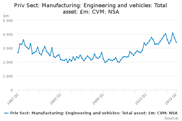 Download this time seriesPriv Sect: Manufacturing: Engineering and vehicles: Total asset: £m: CVM: NSA