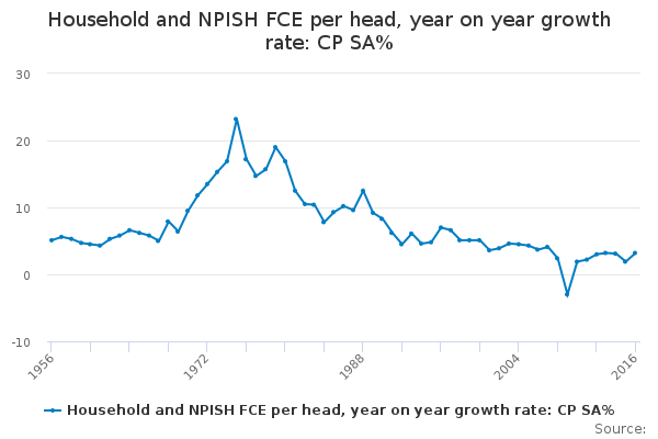 Download this time seriesHousehold and NPISH FCE per head, year on year growth rate: CP SA%