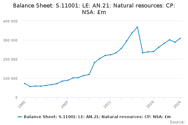 Download this time seriesBalance Sheet: S.11001: LE: AN.21: Natural resources: CP: NSA: £m