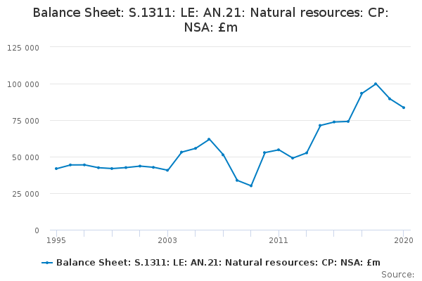 Download this time seriesBalance Sheet: S.1311: LE: AN.21: Natural resources: CP: NSA: £m