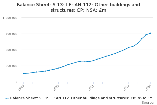 Download this time seriesBalance Sheet: S.13: LE: AN.112: Other buildings and structures: CP: NSA: £m