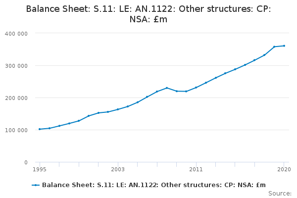 Download this time seriesBalance Sheet: S.11: LE: AN.1122: Other structures: CP: NSA: £m