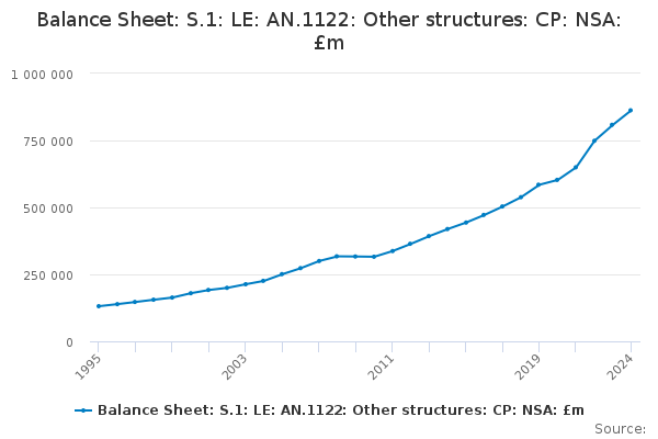 Download this time seriesBalance Sheet: S.1: LE: AN.1122: Other structures: CP: NSA: £m