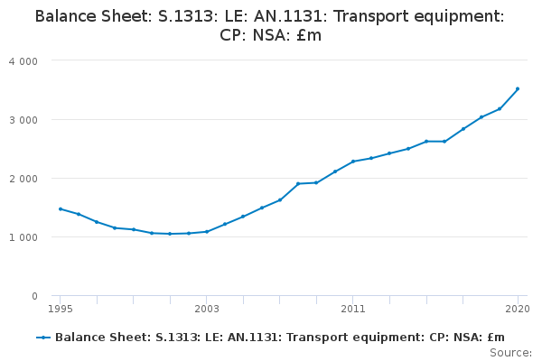 Download this time seriesBalance Sheet: S.1313: LE: AN.1131: Transport equipment: CP: NSA: £m