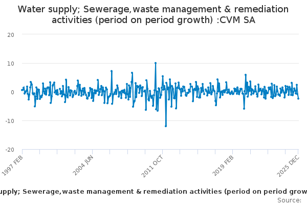 Download this time seriesWater supply; Sewerage,waste management & remediation activities (period on period growth) :CVM SA