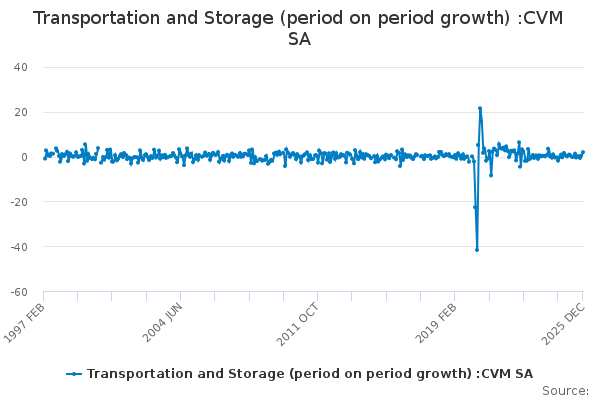 Download this time seriesTransportation and Storage (period on period growth) :CVM SA