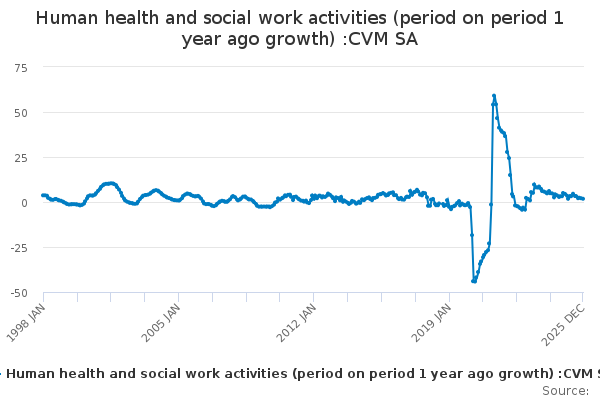 Download this time seriesHuman health and social work activities (period on period 1 year ago growth) :CVM SA