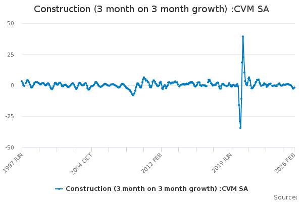 Download this time seriesConstruction (3 month on 3 month growth) :CVM SA