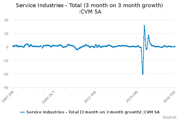 Download this time seriesService Industries - Total (3 month on 3 month growth) :CVM SA