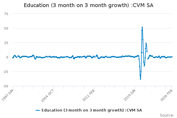 Download this time seriesEducation (3 month on 3 month growth) :CVM SA