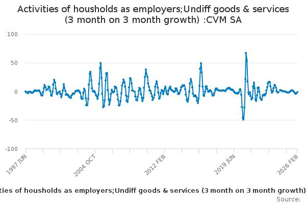 Download this time seriesActivities of housholds as employers;Undiff goods & services (3 month on 3 month growth) :CVM SA